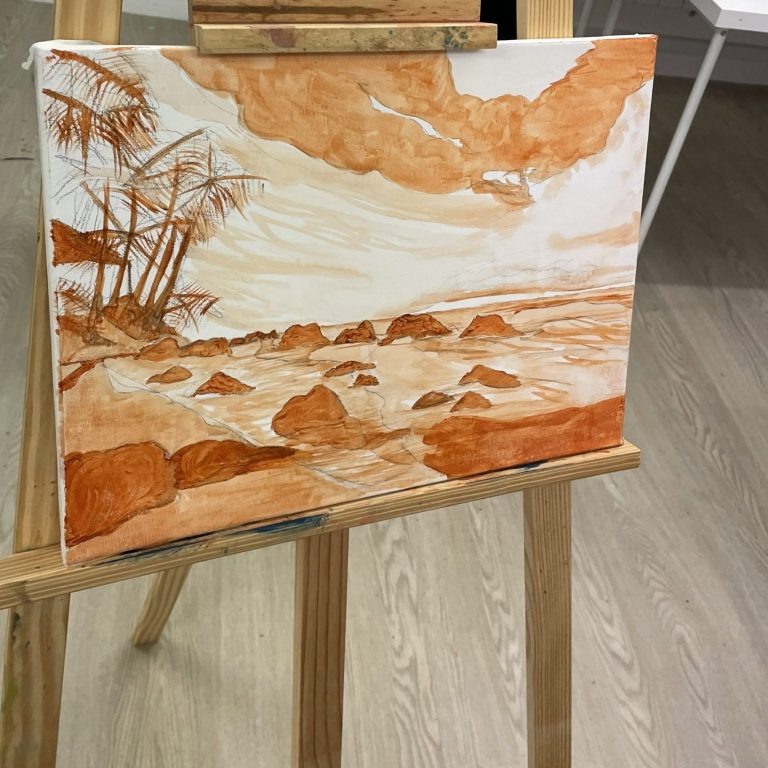 Session 3 you may consider acrylic mediums including paste, sand texture gel, impasto and gloss to develop your idea. You shall finish your acrylic painting and take it home in a protective pizza box style cardboard box ready to hang on your wall.